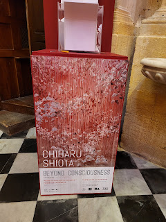 Maar liefst vijf vrijwilligers wachtten ons op en één dame was uitverkoren om ons wegwijs te maken. Dat deed ze vol overtuiging, en na een kwartier konden we dan met de bezichtiging beginnen. We waren de enige bezoekers. Het was beslist een mooi abdij, al haalde hij het niet bij die van Thoronet waar we een paar dagen geleden waren. Maar ook hier was er met erg veel zorg gerestaureerd, al vond ik het persoonlijk wel jammer dat daarbij veel zwarte stalen deuren en trappen waren toegepast. Gelukkig nog net geen visgraatparket, ik bedoel, in een abdij... Echt detoneren deed het trouwens niet, alleen werden alle zichtlijnen er naar onze smaak wat door verstoord. Heel blij waren we met de koelte binnen. Buiten was het inmiddels 36 graden, en zelfs het kleine stukje dat we van de auto naar de ingang moesten lopen (met trappen) viel ons zwaar. Behalve de ruimtes zelf was er ook een expositie, van Raphaël Dallaporta, fotograaf: Éloge du Temps. We waren niet heel enthousiast, maar dat is altijd persoonlijk. Veel fotografische composities van de kosmos, wolken en bewerkingen daarvan.